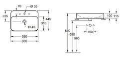 Villeroy & Boch Finion – Wastafel Zonder Overloop, 600×470 Mm, Met Ceramicplus, Alpine Wit 416861R1