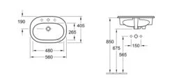 Villeroy & Boch O.novo – Inbouw Wastafel 560×405 Mm, Met Overloop, Met Kraangat, Alpine Wit 41615601