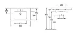 Villeroy & Boch Subway 2.0 – Wastafel 800×470 Mm, Met Overloop, Kraangat, Alpine Wit 71758G01