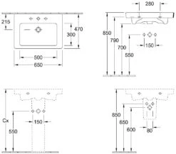 Villeroy & Boch Subway 2.0 – Wastafel Met Overloop, 650×470 Mm, Met 1 Kraangat, Alpine Wit 7113FA01
