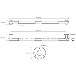 Sapho X-Round – Handgreep Met Antislip, Lengte 600 Mm, RVS XR506