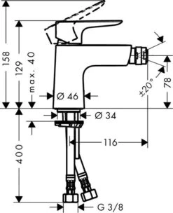 Hansgrohe Talis E – Eengreeps Bidetkraan Met Afvoergarnituur Met Een Trekstang, Chroom 71720000