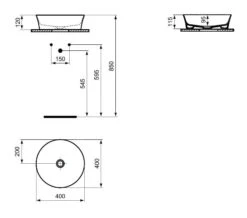 Ideal Standard Ipalyss – Opbouw Wastafel, Diameter 400 Mm, Met Overloop, Glanzend Zwart E1413V2
