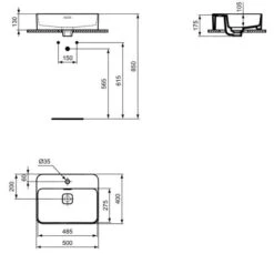 Ideal Standard Strada II – Wastafel 500×430 Mm, Zonder Kraangat, Wit T363701