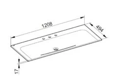Keuco Plan – Wastafel 1208×494 Mm, Verborgen Overloop, 3 Kraangaten, CleanPlus, Wit 32980311203