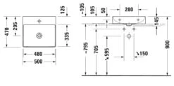 Duravit DuraSquare – Opzetwastafel 600×470 Mm, Met 1 Kraangat, DuraCeram, Alpine Wit 2354600041