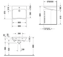 Duravit DuraStyle – Med Wastafel 650×570 Mm, Met 1 Kraangat, Met WonderGliss, Alpine Wit 23306500001
