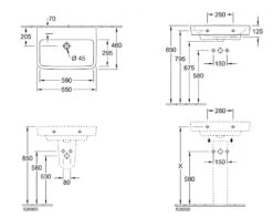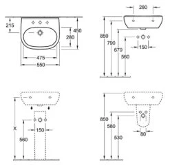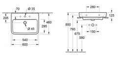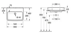 Villeroy & Boch O.novo – Wastafel 550×450 Mm, Zonder Overloop, Met Kraangaten, Alpine Wit 51605601
