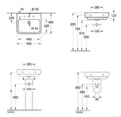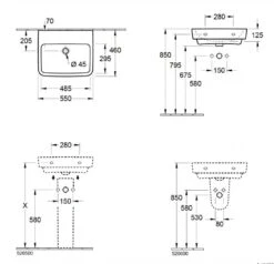 Villeroy & Boch O.novo – Wastafel 550×460 Mm, Met Overloop, Met Kraangat, Alpine Wit 4A415501