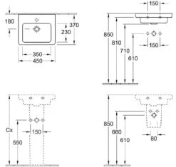 Villeroy & Boch Subway 2.0 – Fontein 450×370 Mm, Met Overloop En Kraangat, Ceramicplus, Wit 731545R1