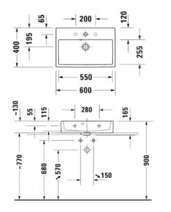 Duravit Vero Air – Meubelwastafel 600×400 Mm, Zonder Overloop, Met Kraangat, Wit 2368600071