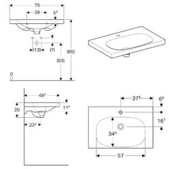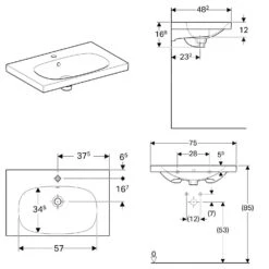Geberit Acanto – Wastafel 750×422 Mm, Met Kraangat En Overloop, Wit 500.632.01.2