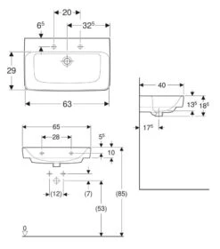 Geberit Selnova Compact – Wastafel 650×400 Mm, Zonder Overloop, Zonder Kraangat, Wit 501.893.00.1