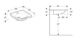 Geberit Vitalis – Medische Wastafel Zonder Gat Met Overloop, 550×550 Mm, Wit 221556000