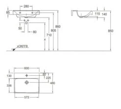 Geberit Xeno 2 – Wastafel 600×480 Mm, Met Kraangat, Zonder Overloop KeraTect, Wit 500.530.01.1