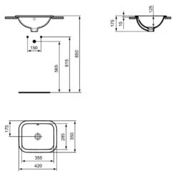 Ideal Standard Connect – Inbouwwastafel, 420×350 Mm, Met Overloop, Ideal Plus, Wit E5055MA