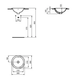 Ideal Standard Connect – Inbouw Wastafel 380 Mm, Met Overloop, Ideal Plus, Wit E5051MA