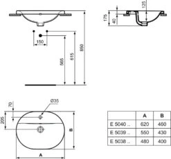 Ideal Standard Connect – Inbouwwastafel, 550×380 Mm, Met Overloop, Ideal Plus, Wit E5047MA