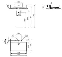 Ideal Standard Extra – Opbouw Wastafel 600×450 Mm, Met Overloop, Met 3 Kraangaten, Wit T389001