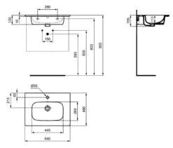 Ideal Standard I.Life A – Wastafel 640×460 Mm, Met Overloop, Kraangat, Wit T461901