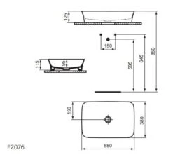 Ideal Standard Ipalyss – Opbouw Wastafel, 550×380 Mm, Zonder Overloop, Mat Zwart E2076V3
