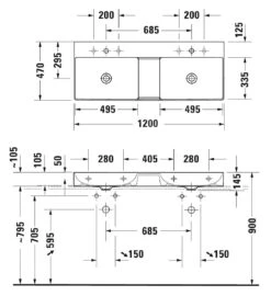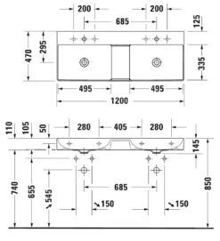 Duravit D-Code – Dubbele Inbouw Wastafel 1200×490 Mm, Met Overloop, Met Kraangat, Wit 03481200002