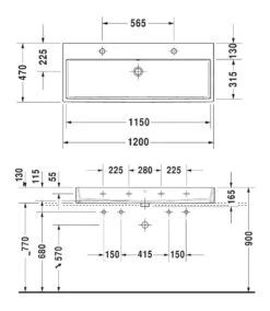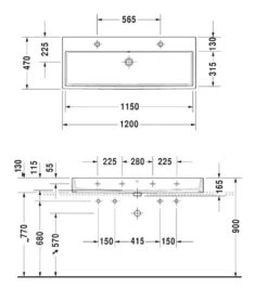 Duravit Vero Air – Dubbele Meubelwastafel 1200×470 Mm, Met Overloop, Zonder Kraangat, Wit 2350120028