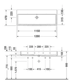 Duravit Vero Air – Dubbele Wastafel 1200×470 Mm, Zonder Overloop, Met 2 Kraangaten, Wit 2350120043