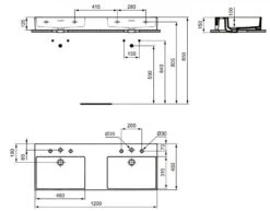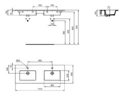 Keuco Plan – Dubbele Wastafel 1208×494 Mm, Zonder Overloop, 2 Kraangaten, CleanPlus, Wit 32980311202
