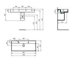 Ideal Standard Extra – Dubbele Wastafel Opbouw 1000×450 Mm, Met Overloop, Met Kraangat, Wit T390601