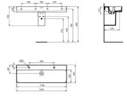 Ideal Standard Extra – Dubbele Wastafel Opbouw 1200×450 Mm, Met Overloop, Met Kraangat, Wit T391301