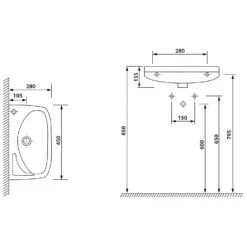 Duravit Architec – Fontein, 360×380 Mm, Zonder Overloop, Met Kraangat Links, Wit 0766350009