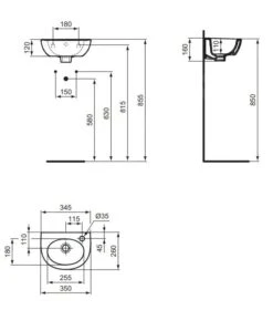 Ideal Standard Connect Air – Fontein 400×350 Mm, Met Overloop, Kraangat, Ideal Plus, Wit E0701MA