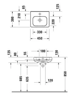 Duravit Soleil By Starck – Fontein 450×380 Mm, Met Overloop, Kraangat, WonderGliss, Wit 07444500001