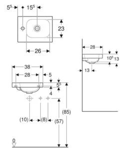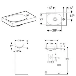Geberit Acanto – Fontein 400×250 Mm, Kraangat Rechts, Zonder Overloop, KeraTect, Wit 500.635.01.8
