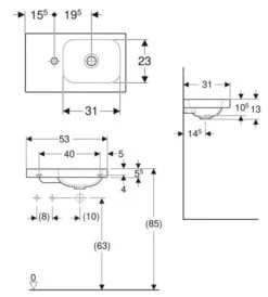 Geberit ICon – Fontein 530x310x130 Mm, Zonder Overloop, Kraangat Links, KeraTect, Wit 501.833.00.2