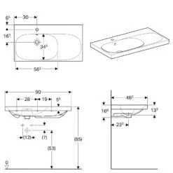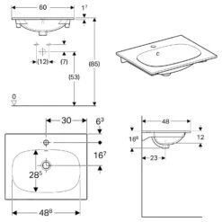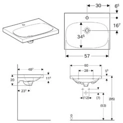 Geberit Acanto – Wastafel 600×480 Mm, Met Kraangat En Overloop, KeraTect, Wit 500.640.01.8