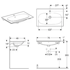 Geberit Acanto – Wastafel 750×482 Mm, Met Kraangat En Verborgen Overloop, Wit 500.630.01.2