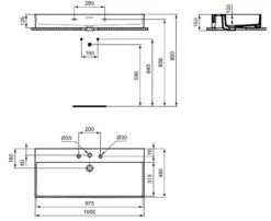 Ideal Standard Extra – Opbouw Wastafel 1000×450 Mm, Met Overloop, Zonder Kraangat, Wit T390801