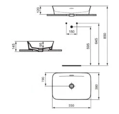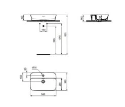 Ideal Standard Ipalyss – Opbouw Wastafel, 550×380 Mm, Met Overloop, Met Kraangat, Powder E2077X8