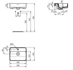 Ideal Standard Ipalyss – Opbouwwastafel, 650×400 Mm, Met Overloop, Ideal Plus, Wit E1887MA