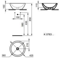 Ideal Standard Ipalyss – Opbouwwastafel, Diameter 400 Mm, Zonder Overloop, Ideal Plus, Wit E1398MA
