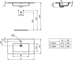 Ideal Standard Tempo – Meubelwastafel 815x450x140 Mm, Met Overloop,1 Kraangat, Wit E066901