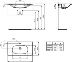Ideal Standard Tempo – Meubelwastafel 610x455x138 Mm, Met Overloop, 1 Kraangat, Wit E066801