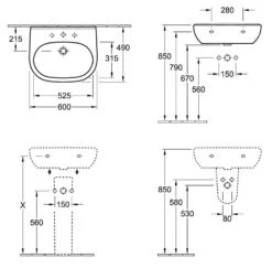 Villeroy & Boch O.novo – Wastafel 600×490 Mm, Zonder Overloop, Met Kraangat, Alpine Wit 51606101