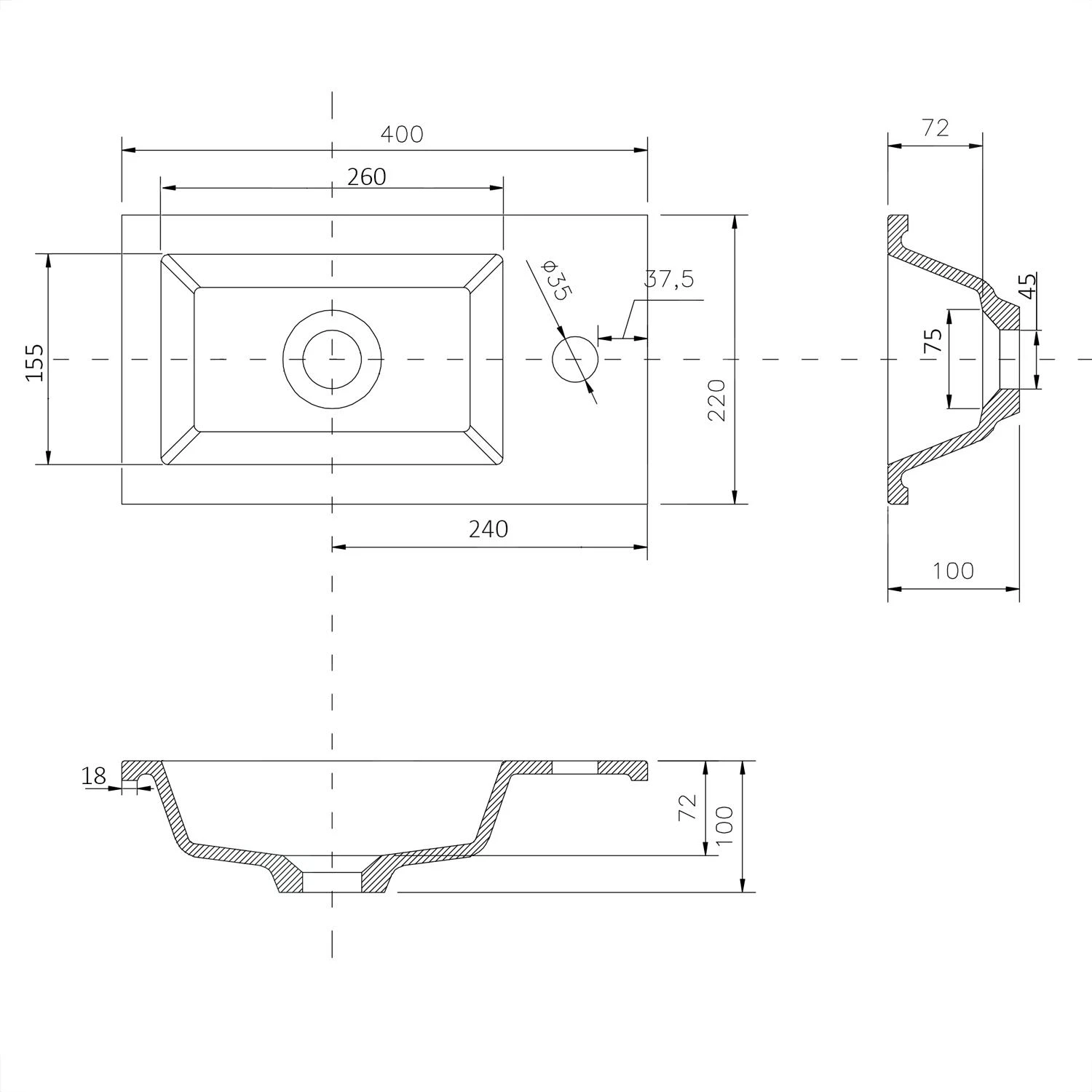 - afmetingen: 400 x 220 mm, hoogte: 100 mm