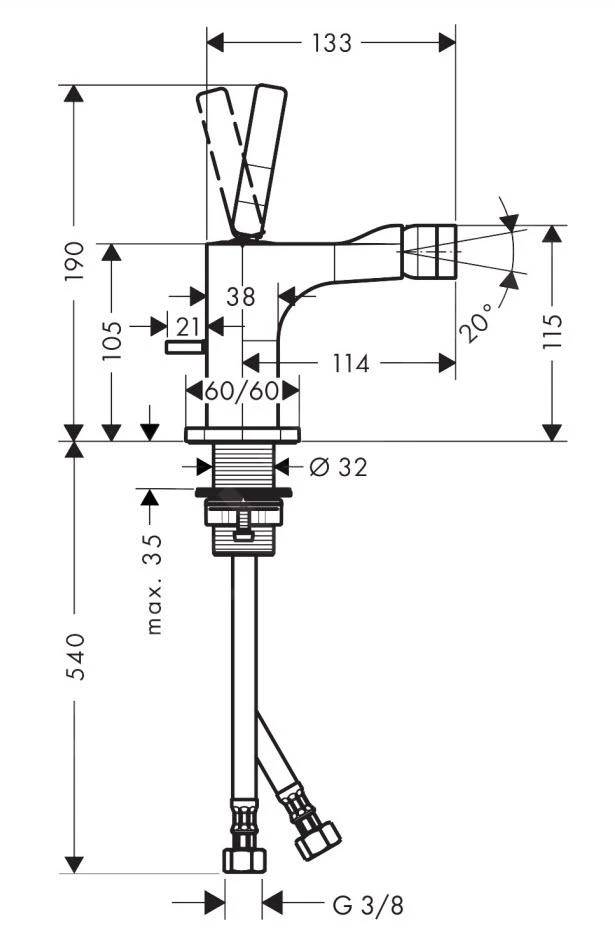 - kraanhoogte 190 mm