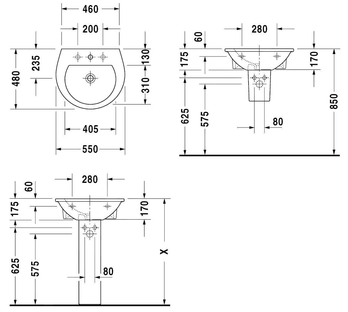 - installatie: wandmontage door ophangen, met zuil of sifonkap