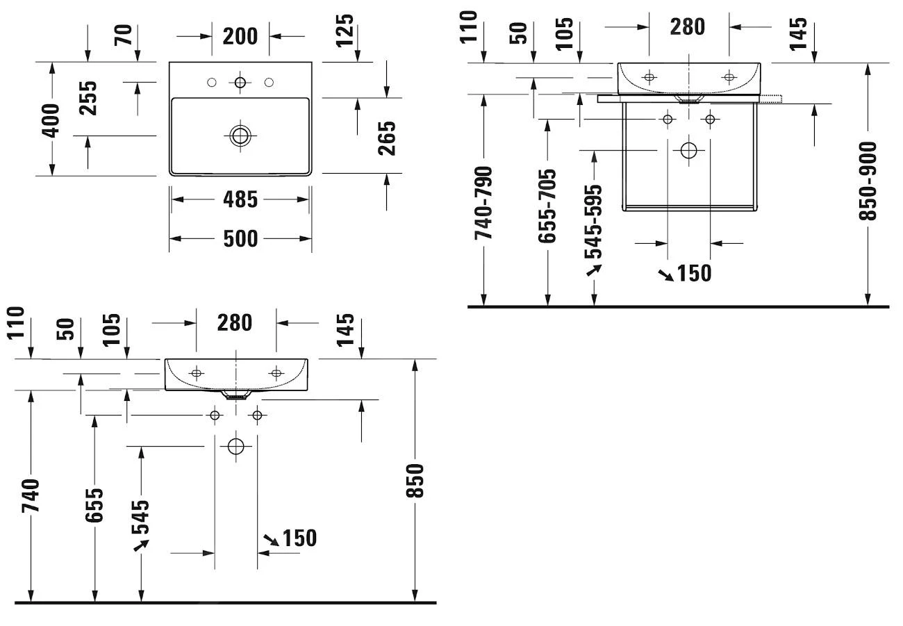 - zonder gat voor wastafelkraan
