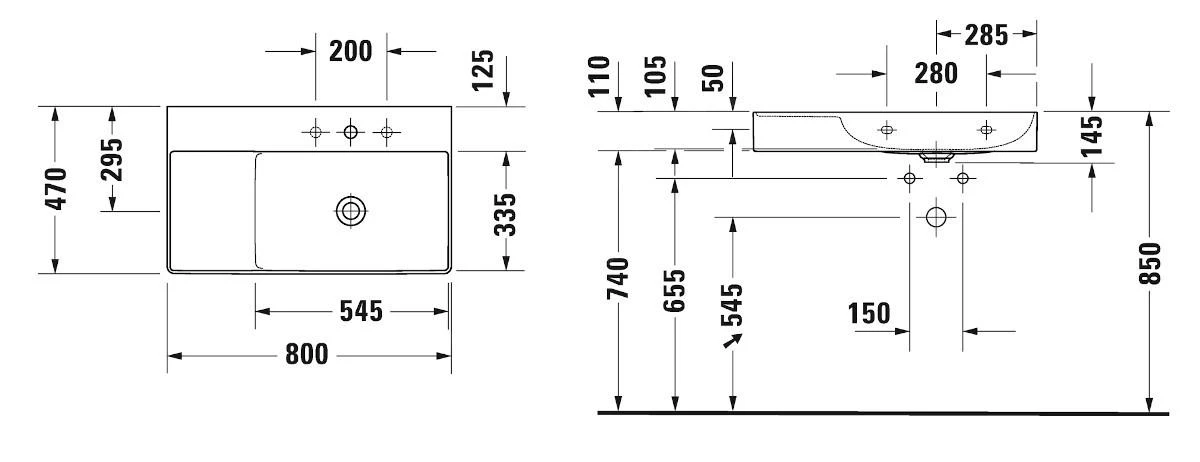 Hangende wastafel asymmetrisch zonder overloop
